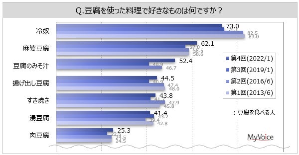 マイボイスコム株式会社(東京都千代田区、代表取締役社長:高井和久)は、インターネット調査を中心に提供している伊藤忠グループのリサーチ会社です。この度、4回目となる『豆腐』に関するインターネット調査を2022年1月1日~5日に実施し、10,109件の回答を集めました。調査結果をお知らせします。