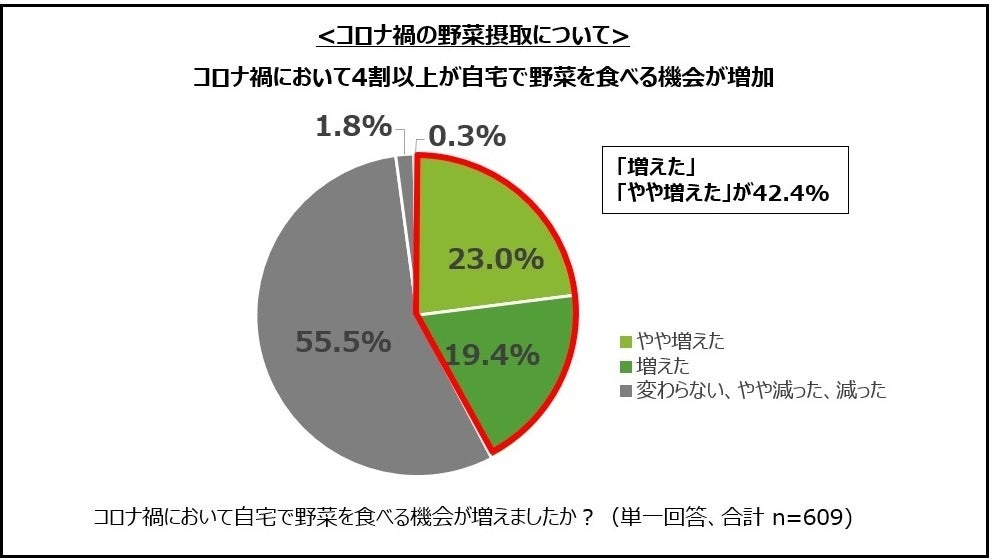 コロナ禍において4割以上が自宅で野菜を食べる機会が増加