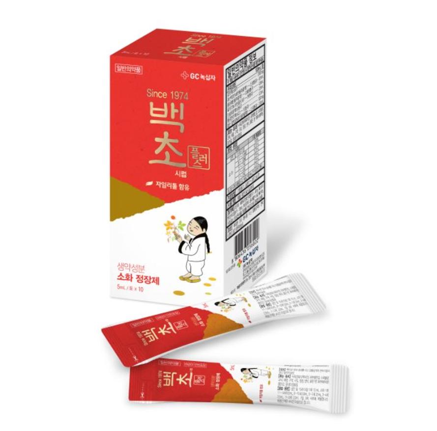 백초 시럽 플러스는 동의보감 처방을 기초로 한 어린이용 소화정장제로, 감초, 아선약, 육계, 인삼 등의 순수 생약 성분이 함유돼 있다.