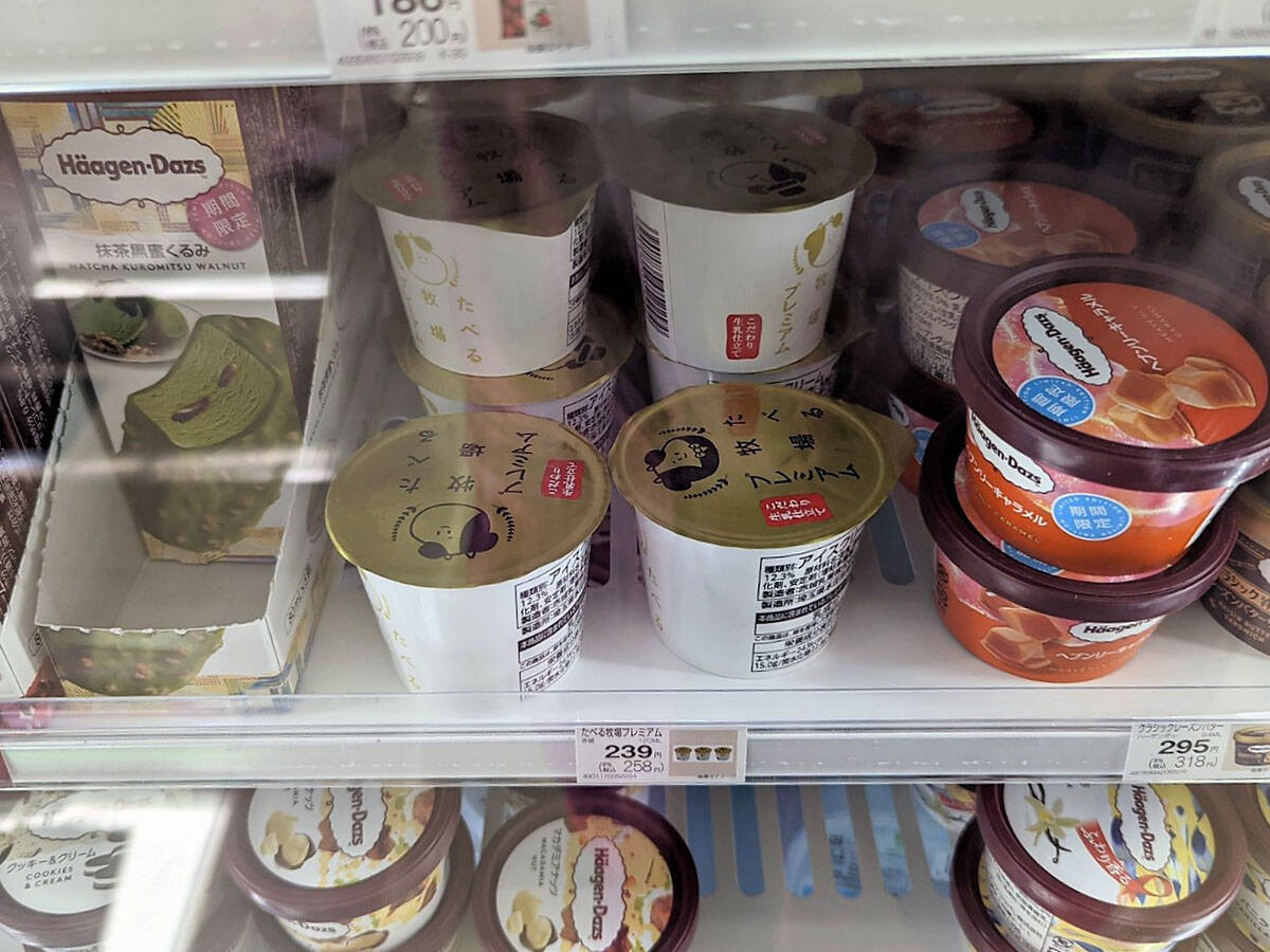 ハーゲンダッツと並べて販売。プレミアム感満載の「たべる牧場プレミアム」を食べてみた
