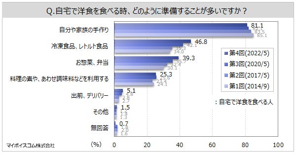 からの記事と詳細 ( 【洋食に関する調査】自宅で食べる洋食の準備方法は「自分や家族の手作り」が8割強、続く「冷凍食品、レトルト食品」「お惣菜、弁当」は増加傾向。自宅でよく食べる洋食... - PR TIMES )