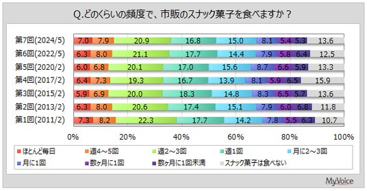 マイボイスコム株式会社(東京都千代田区、代表取締役社長:高井和久)は、7回目となる『スナック菓子』に関するインターネット調査を2024年5月1日~7日に実施しました。